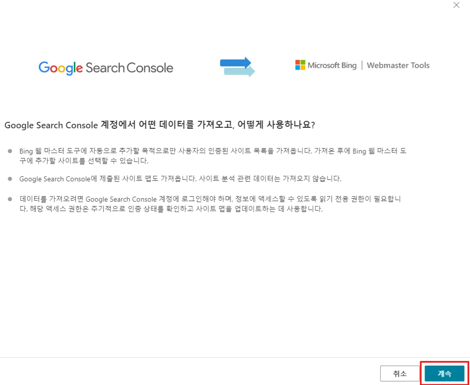 빙 웹마스터 도구에 접속하자