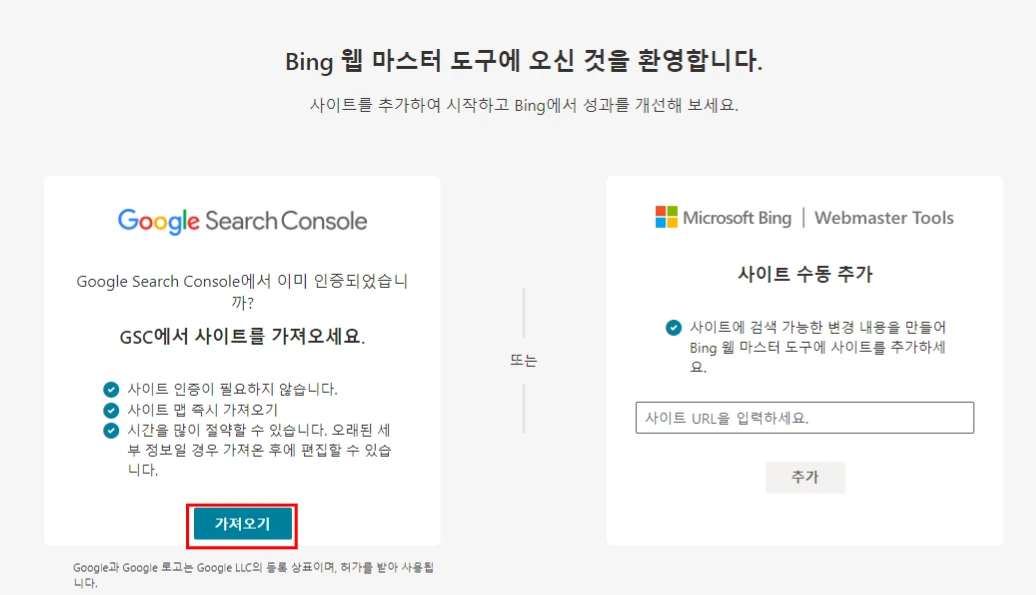 우리는 이미 구글 서치 콘솔에 블로그 등록을 마쳤으므로, 좌측의 "가져오기"를 눌러주자