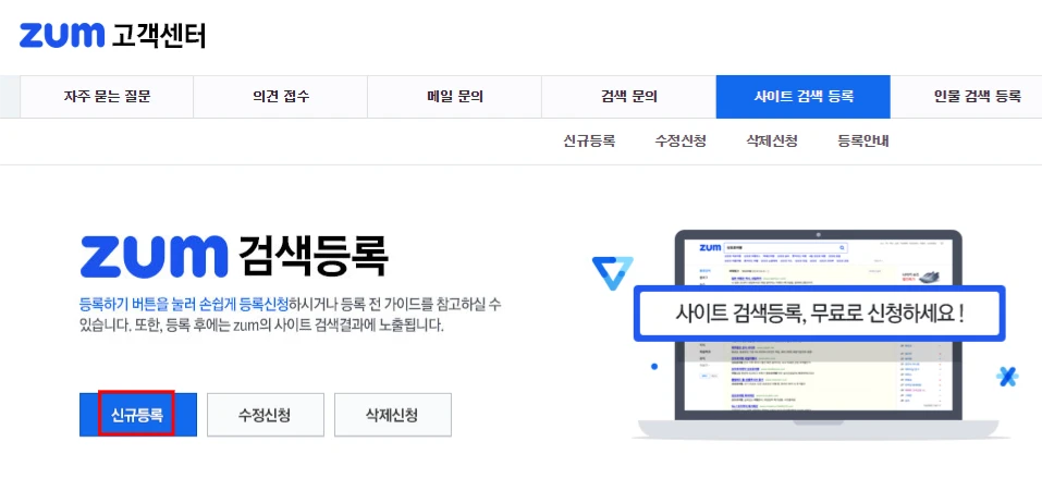 줌 사이트 검색 등록으로 이동