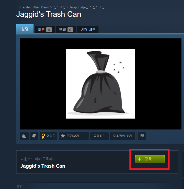 일단 창작마당에서 사용하고 싶은 모드의 구독버튼을 꾸욱 눌러준 뒤
