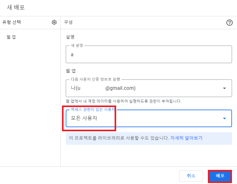 제대로 복붙 했으면 "새 배포" 누르기