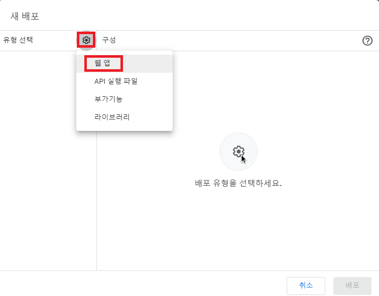 그담 톱니바퀴 눌러서 웹 앱 누름